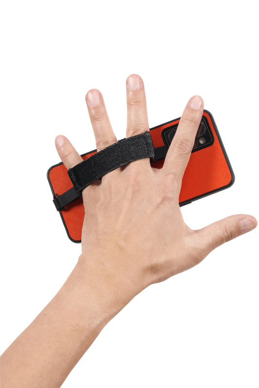 指をあずけるだけで、重さと落下不安から解放される、特許取得の新感覚スマホバンド。長時間の操作も心地よく、手の疲れをやさしく軽減し、毎日のスマホ時間をもっとぐっと楽にします。