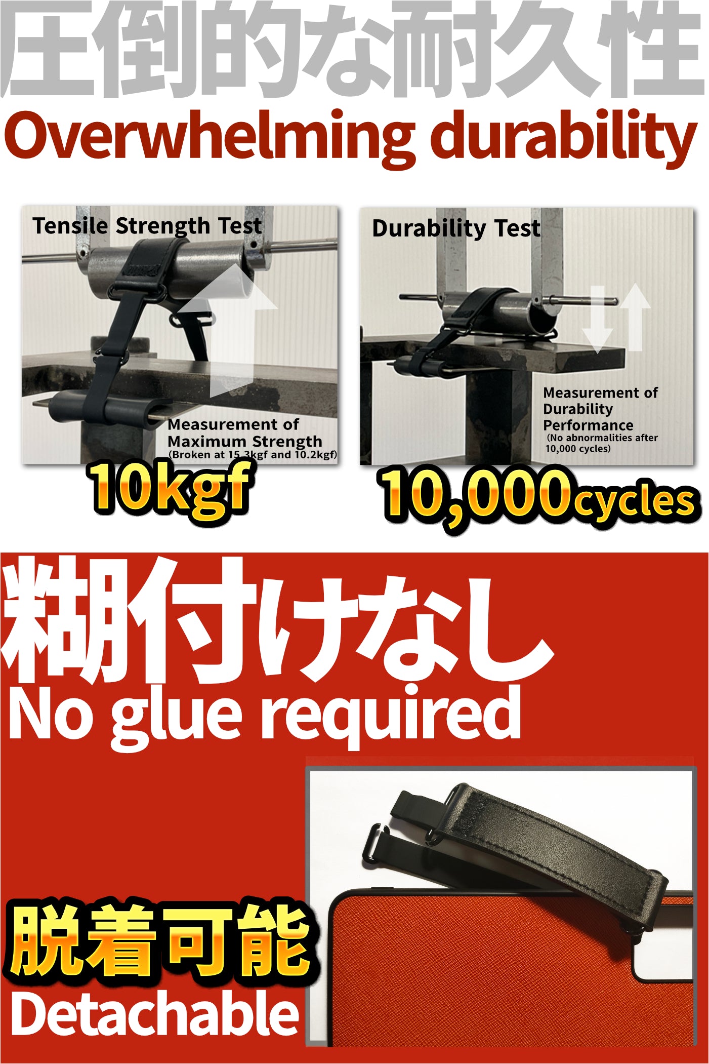 使い心地と耐久性に特徴がある、特許取得のスマホバンドです。